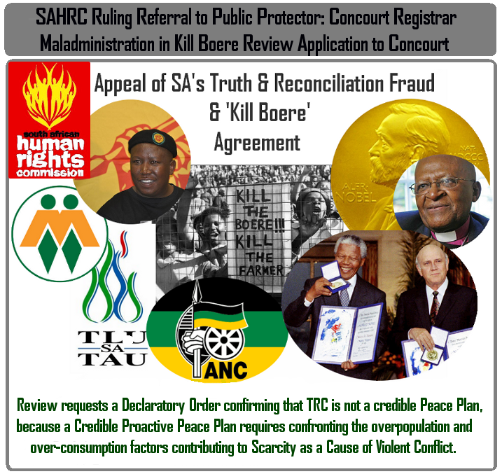 SAHRC refers Concourt Registrar's maladministration refusal to process the Radical Honesty culture's review of Equality Court case between Afri-Forum, TAU-SA, Malema and the ANC, to the Office of the Public Protector.